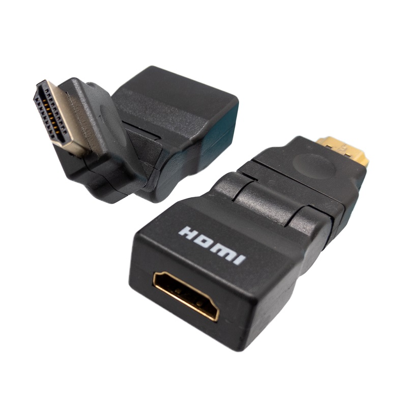 Adaptador HDMI macho – hembra en dorado con rotación 270º