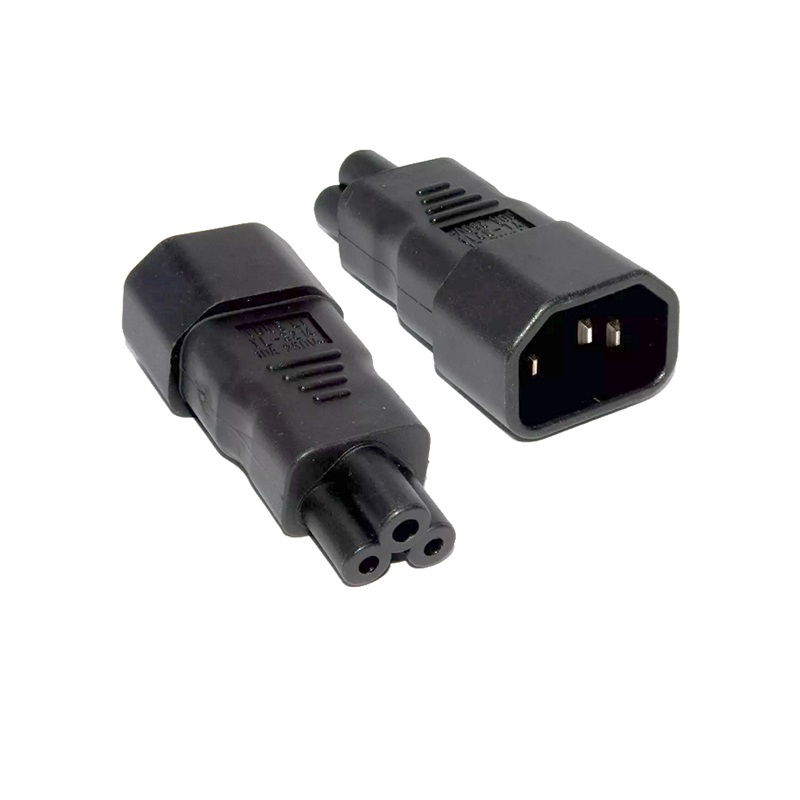 Adaptador compacto IEC 60320 tipo C5 (hembra) a IEC 60320 C14 (macho) en color negro