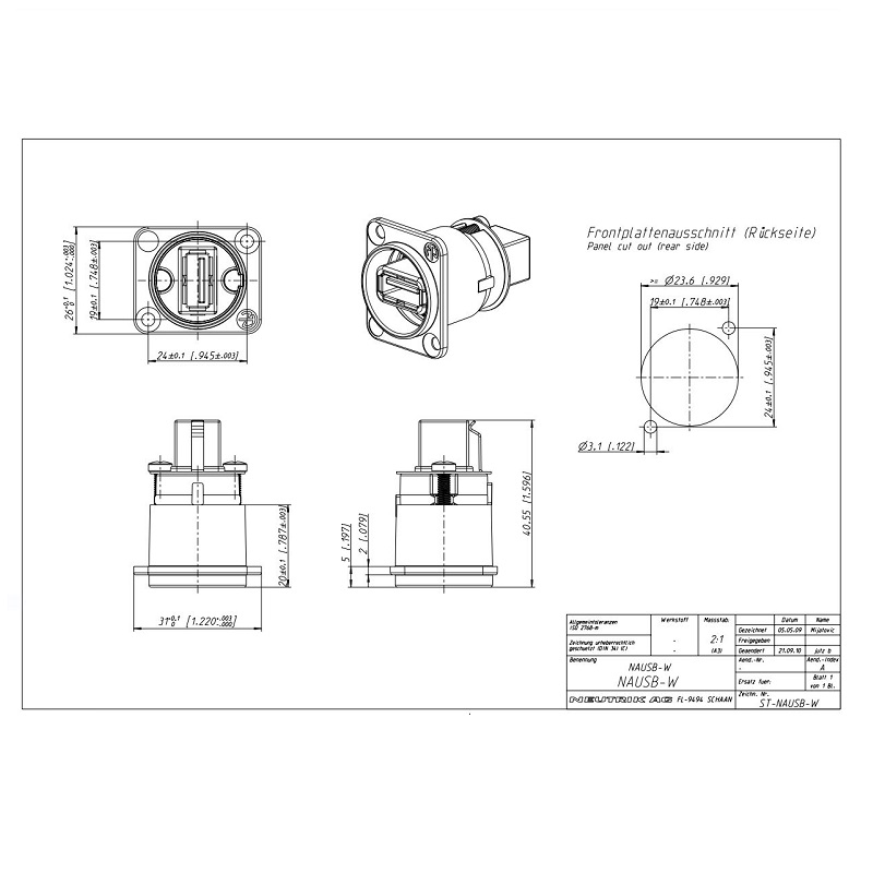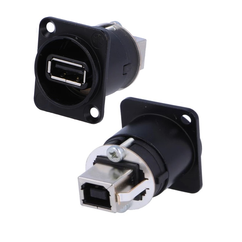 Adaptador USB 2.0 reversible (Tipo A y B) Neutrik NAUSB3-W-B carcasa negra D para panel