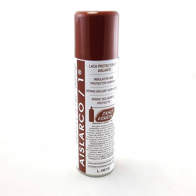 Barniz/laca acrílica protectora y aislante, transparente-incolora, de gran resistencia y secado rápido. Recubre la pieza tratada con un finísimo escudo, sellándola contra la humedad, óxido, ácidos, sales y cualquier suciedad.