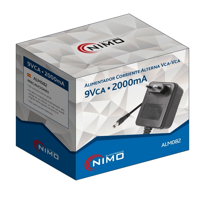 Alimentador de corriente alterna entrada 220VCA salida 9VCA de 2 amperios NIMO ALM082