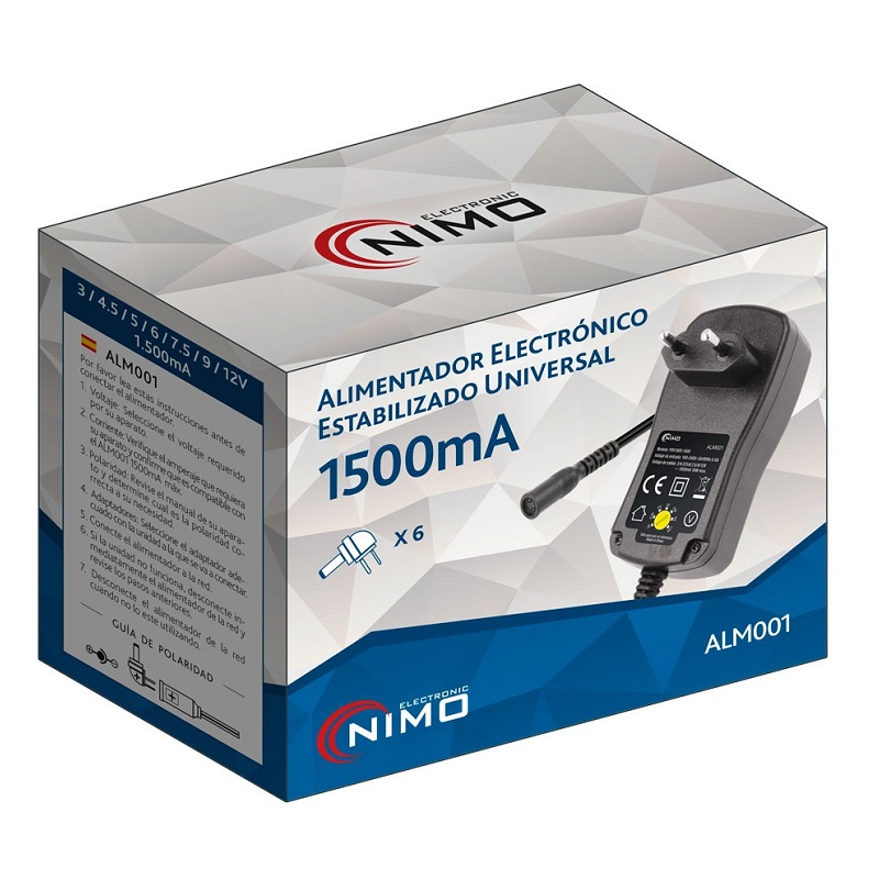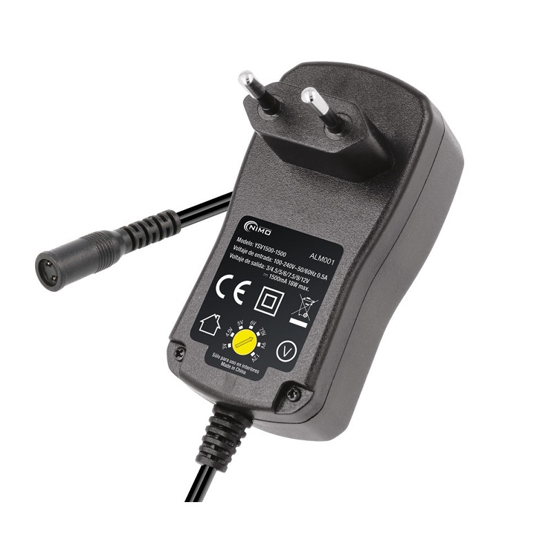 Alimentador universal regulable 18W 1.5A Nimo ALM001 de salida variable 3-4.5-5-6-7.5-9-12V DC con 6 clavijas intercambialbes