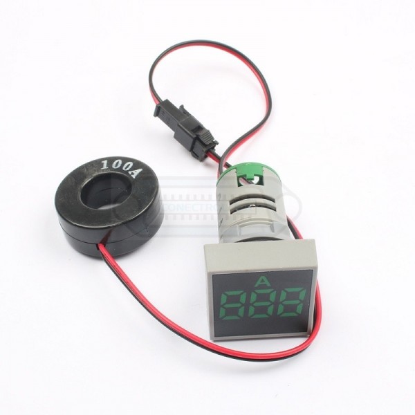 Amperímetro cuadrado para panel AD101-22AMS con pantalla digital 0-100A en color rojo.
