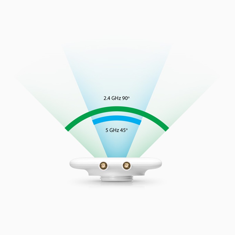 Ancho de haz de elevación: 2,4 GHz – 90° / 5Ghz – 45°
