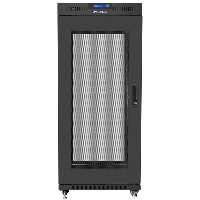 Armario Rack 19″ de pie 27U Ancho 600 Fondo 800 Puerta de metal perforado y color negro RAL9004 Lanberg FF01-6827-23BL