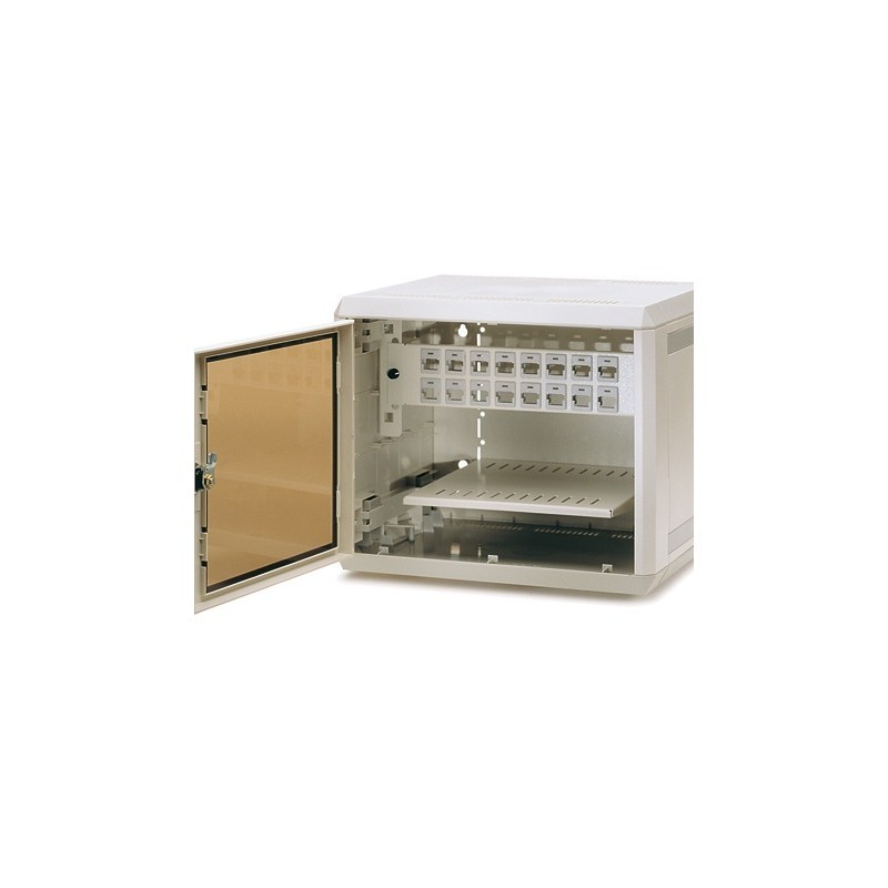 Rack mural de pequeñas dimensiones según el concepto SOHO (Small Office-Home Office), ideal para instalaciones de voz/datos, telefonía ADSL, Internet, videoconferencia, etc… y compatible con la tecnología Wireless, gracias a que permite la transmisión por radiofrecuencia.