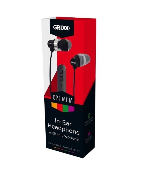 Audifonos intrauriculares con micrófono GRIXX Optimun GROHU3000R en color negro con cable de 1.2m y conexión jack 3.5mm.
