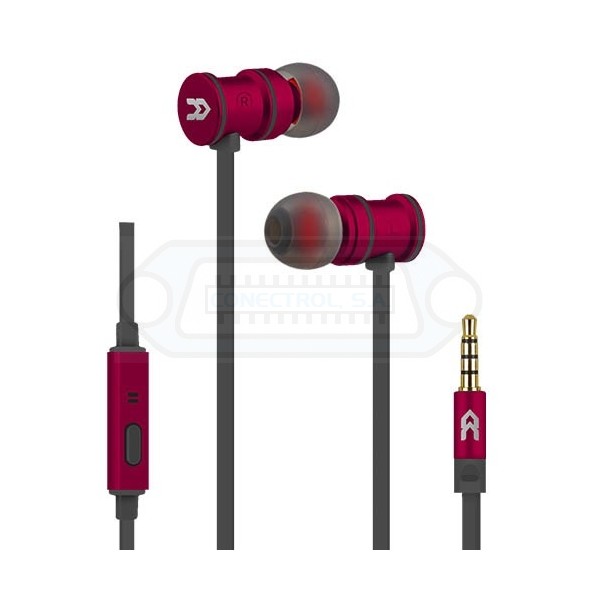 Auriculares In-Ear Avenzo AV636RJ de aluminio con cabezal imantado y micrófono integrado, cable plano de 1.2 metros. color rojo.