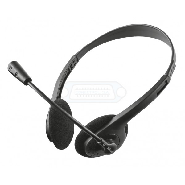 Auriculares estéreo ultraligeros Trust Primo 21665 con micrófono flexible ajustable y control de volumen en el cable.