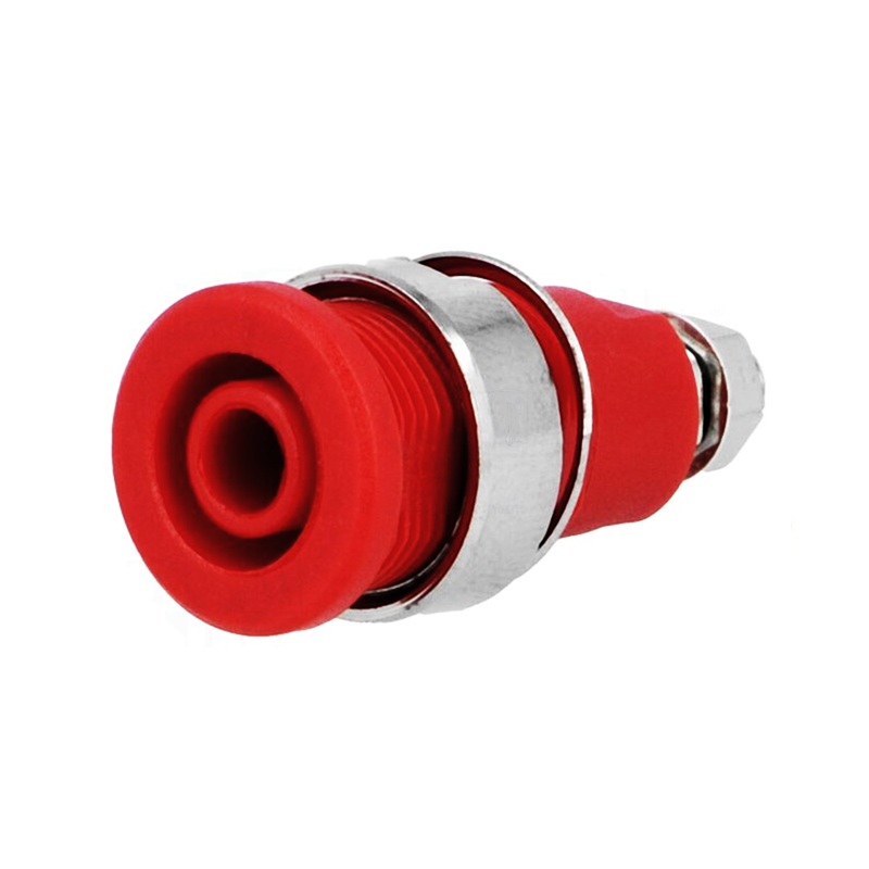 Banana hembra aislada para chasis de Ø4mm. 32A, en color rojo