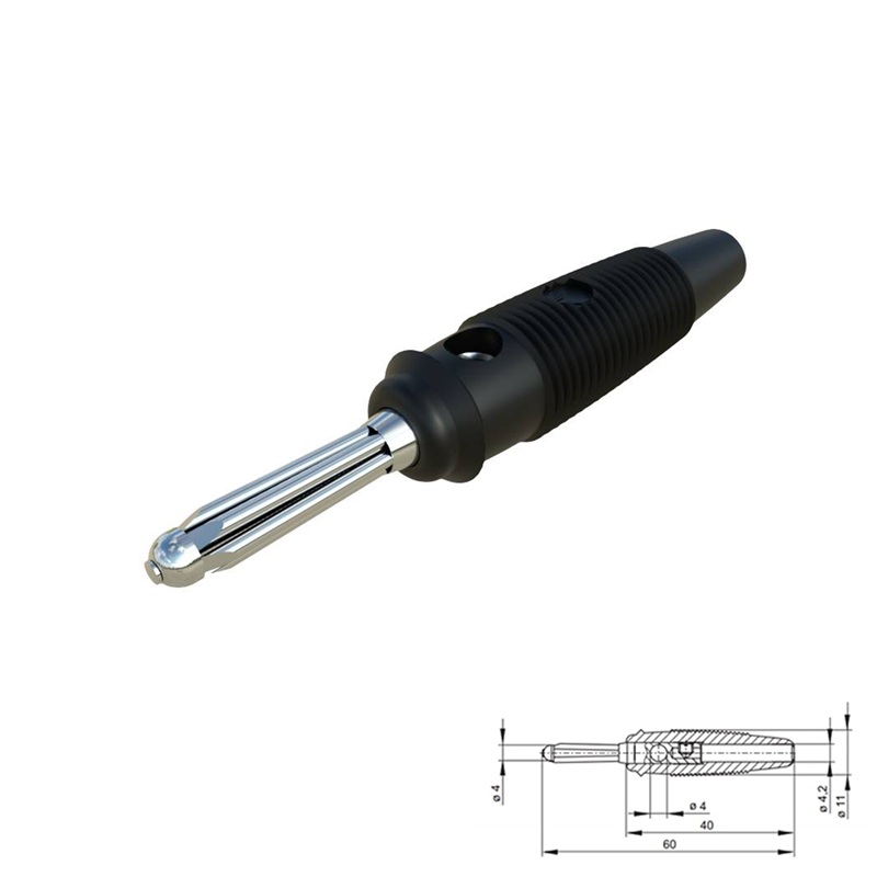 Banana macho de Ø4mm 16A DC 60V Hirschmann BUELA 20 K con aislamiento en color negro