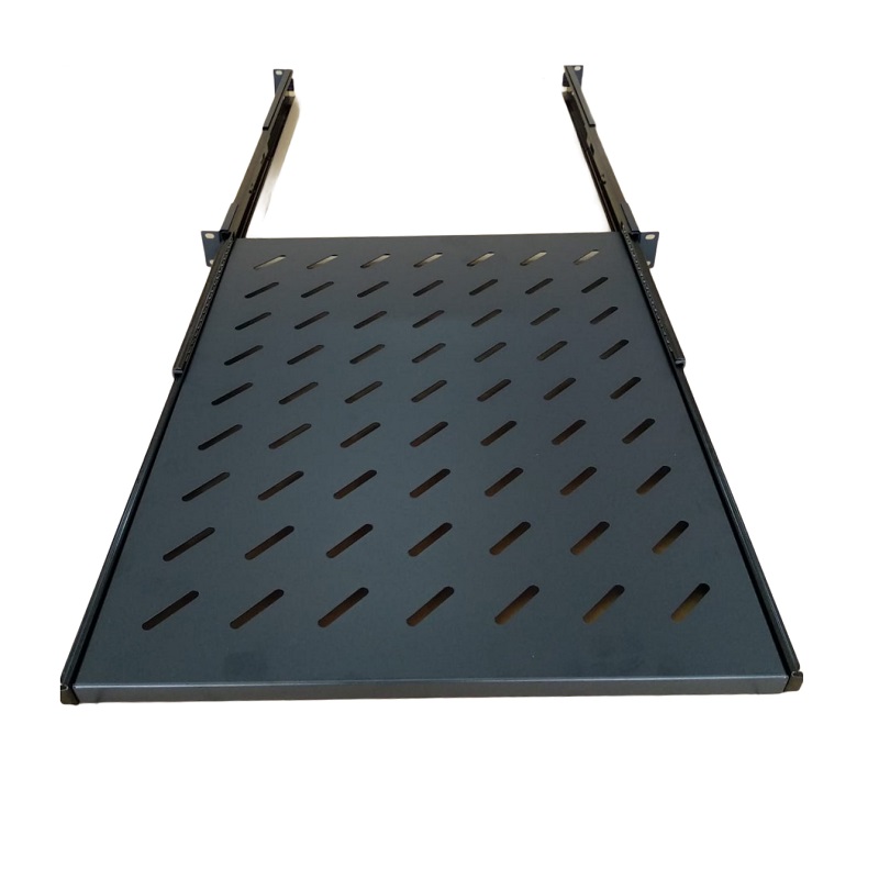 Bandeja telescópica extensible 19″ de fondo 550mm y fijación de F800mm. 4 puntos, adecuado para armarios murales o rack de fondo 800