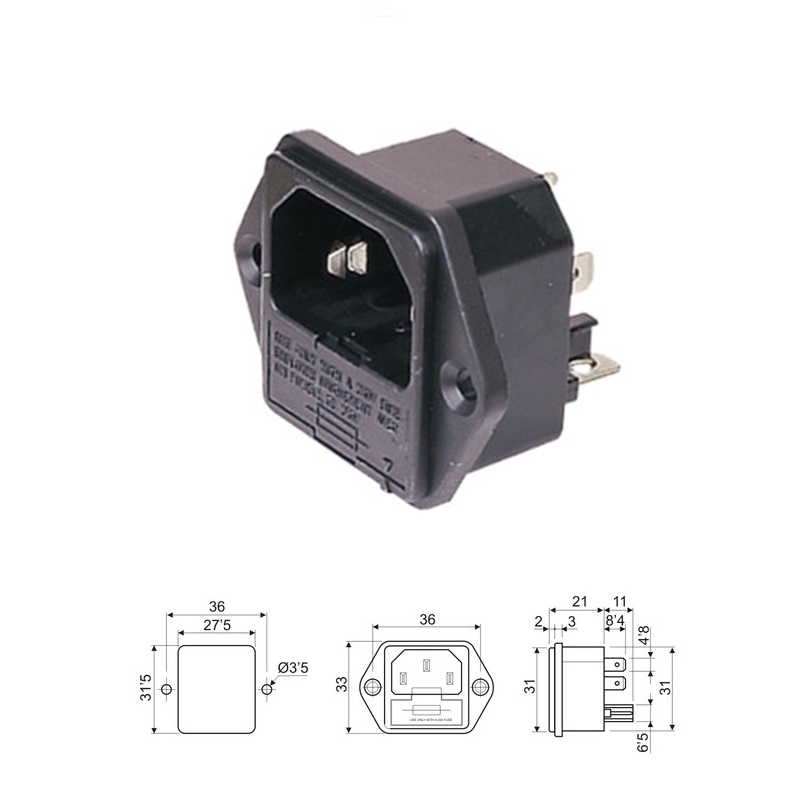Base de conexión IEC 320 + portafusible.