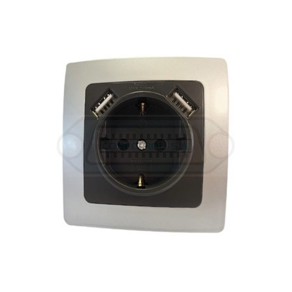 Base Schuko para empotrar con 2 tomas USB 2.1A Electro DH 36.530/B/USB/PG