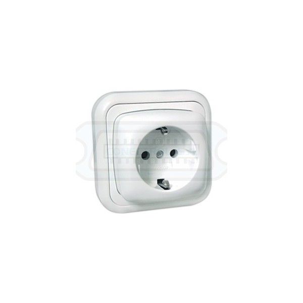 Base de enchufe Shucko con toma de tierra 3680W (16A/250V) de 80x80x40 en color blanco.