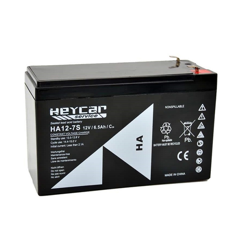 Batería de Plomo Ácido alta descarga 12 Voltios 7 Amperios Heycar HA12-7S fabricada con tecnología AGM.