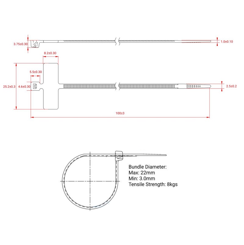 Brida de Nylon PA66 con marcador 2.5mm x 100mm en color natural