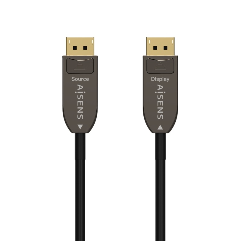 Cable DisplaPort AOC (fibra óptica/cobre) V1.4 8K@60Hz 4K@120Hz 4:4:4 32.4Gbps, AISENS A155-0608 macho – macho, en color negro, longitud 20 metros.