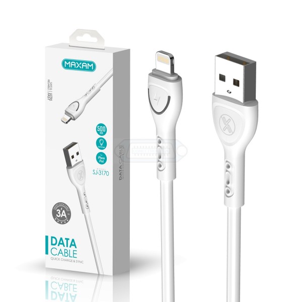 Cable conexión iPhone/iPad Lightning a USB tipo A 3A con luces led, en color blanco, 50 centimetros.