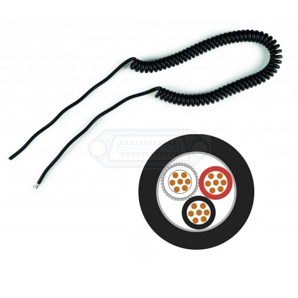 Cable rizado Fonestar 2357 para repuesto de micrófonos de comunicaciones. con 3 conductores + blindaje y 3,2 metros de longitud extendido.