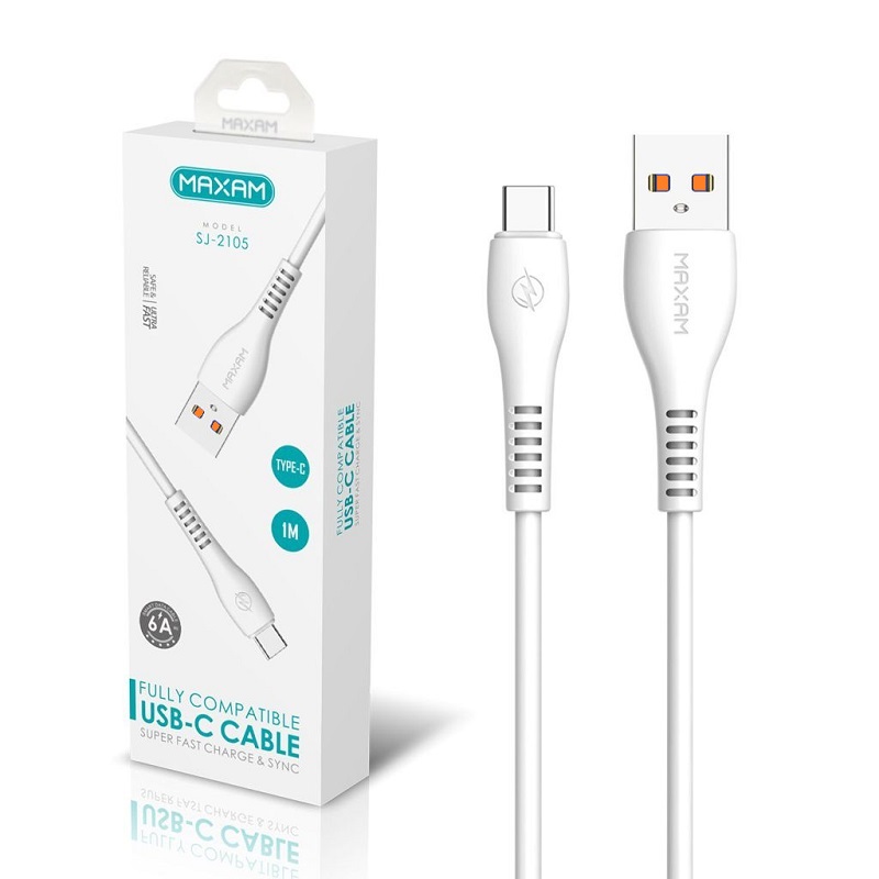 Cable de conexión USB-C a USB-A de 6A para carga y datos en color blanco de 1 metro.