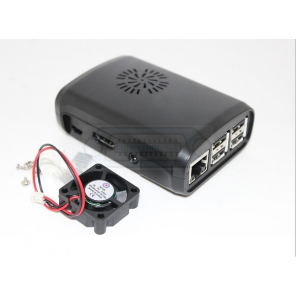 Caja ABS con módulo ventilador y 3 disipadores de aluminio para Raspberry Pi 3 B y B+.