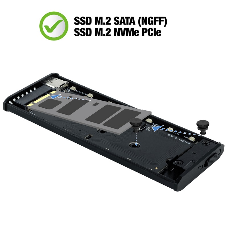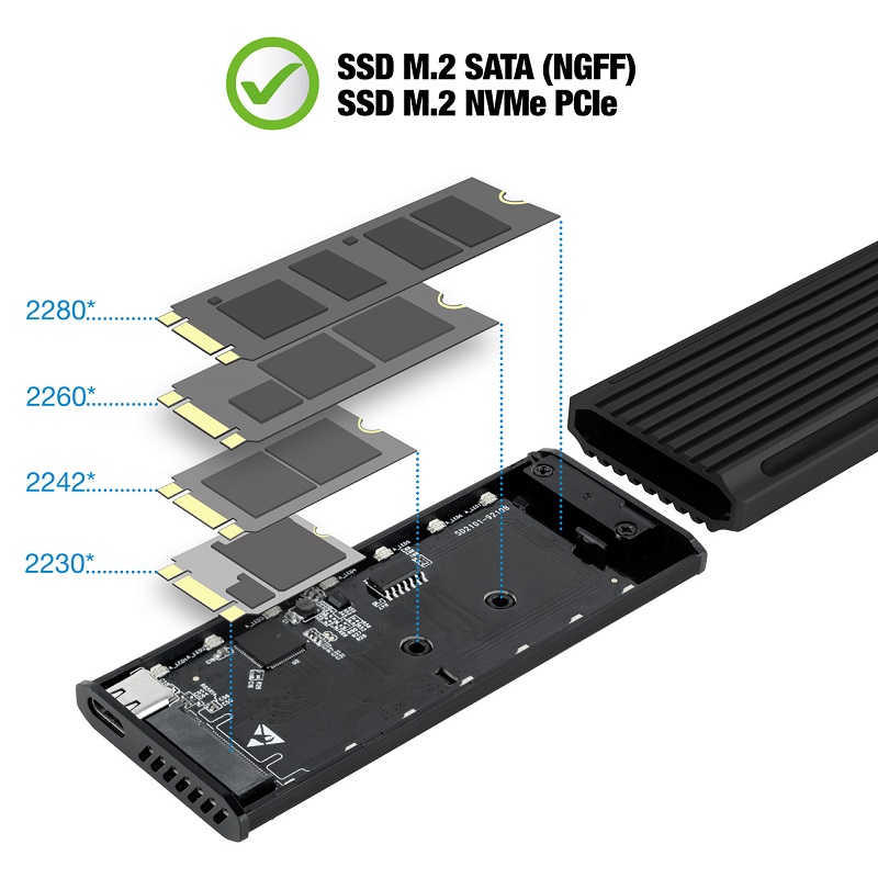 Compatible con M.2 NGFF y NVMe PCIe 2230/2242/2260/2280