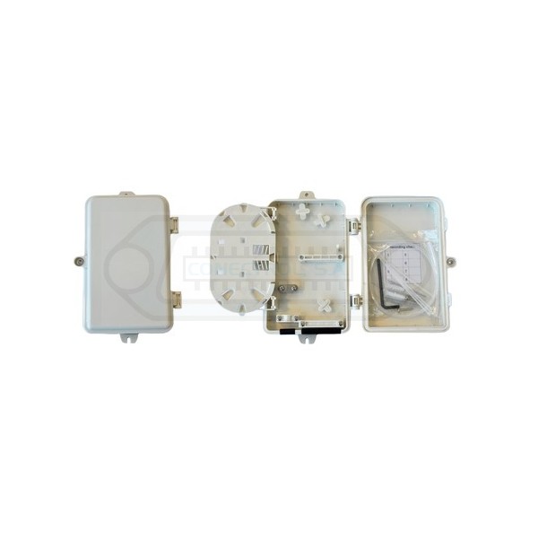 Dispone de varias salidas y entradas de cable para la segregación y distribución de las Fibras Ópticas. Cierre con fijación mediante lengüetas y tornillo.