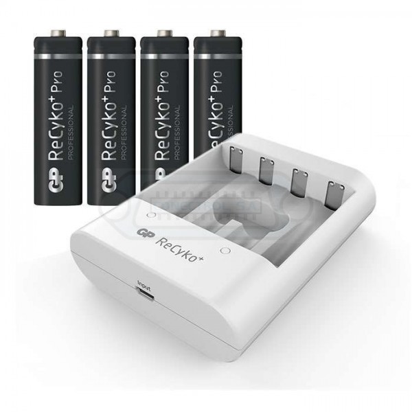 Cargador de baterías recargables GP ReCyko+ Pro USB U411 con control automatico de corte para baterías NiMH AA/AAA. Incluye 4 baterías Precharged AA de 2000mAh.