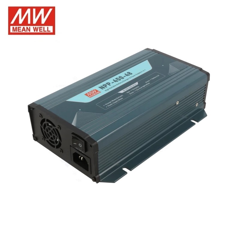 Cargador de baterías de plomo, Gel, AGM y húmedas MEAN WELL NPP-450-48 fuente de alimentación 2 in-1, 48V, 6.8A, 450W, Salida tornillo.