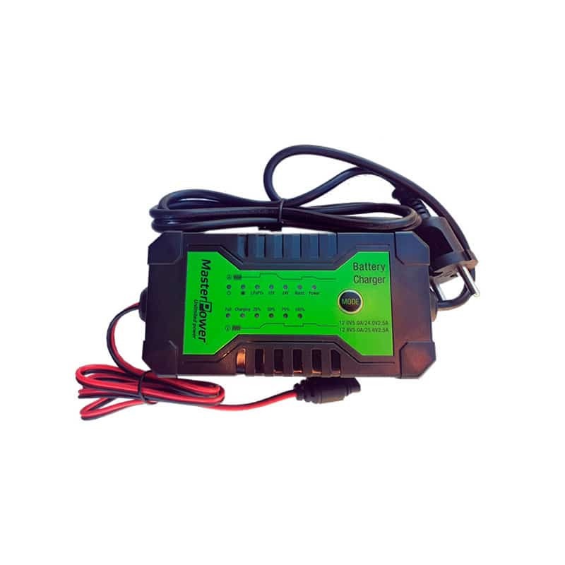 Cargador Inteligente para Baterías de Plomo Ácido, AGM, Gel y LiFePO4 Master Power MF-12/24V-60W con protección cortocircuitos