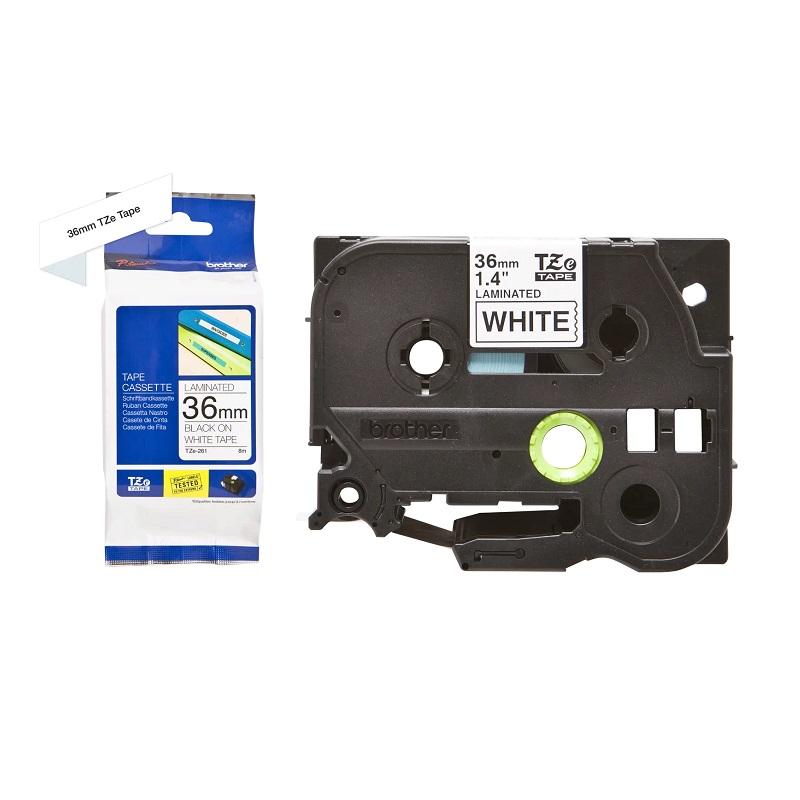 Cinta laminada 36mm Brother TZE-261 Texto negro sobre fondo blanco. 8 metros