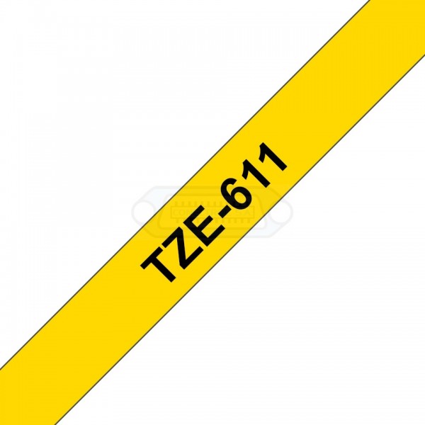 Cinta Laminada adhesiva Brother TZe611 Texto negro sobre fondo amarillo Ancho: 6 mm. Longitud: 8 m