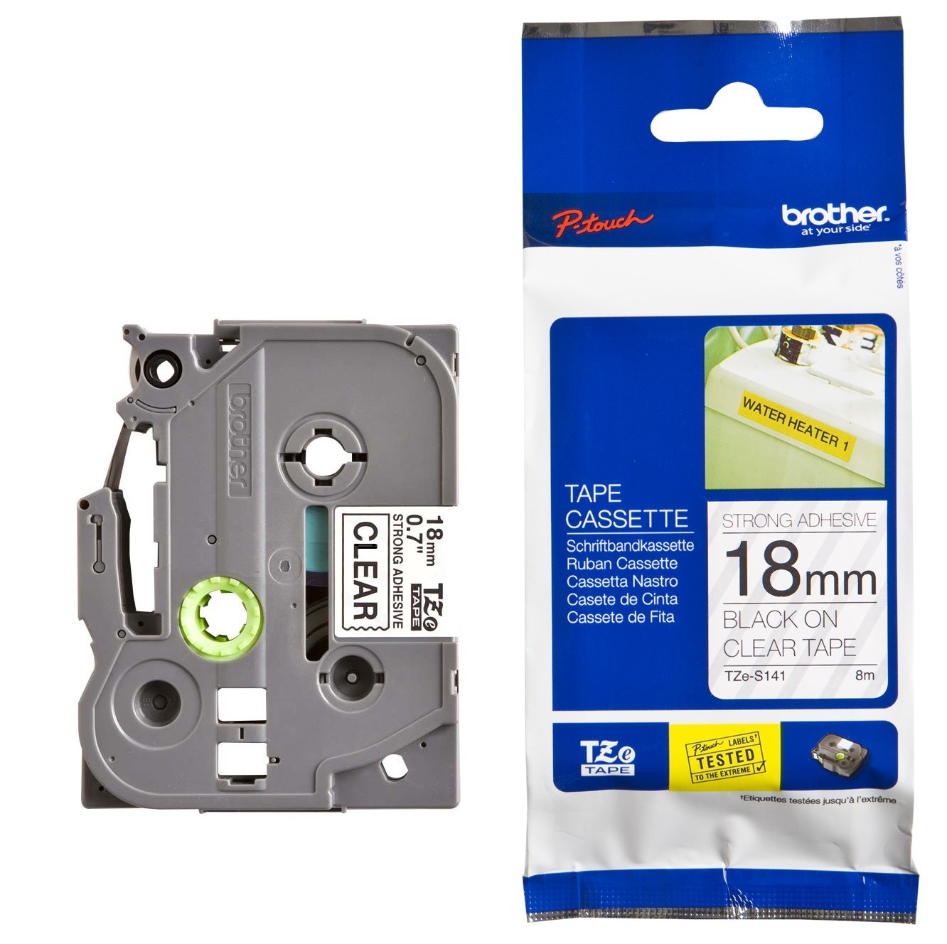Cinta laminada superadhesiva. Texto negro sobre fondo transparente.
