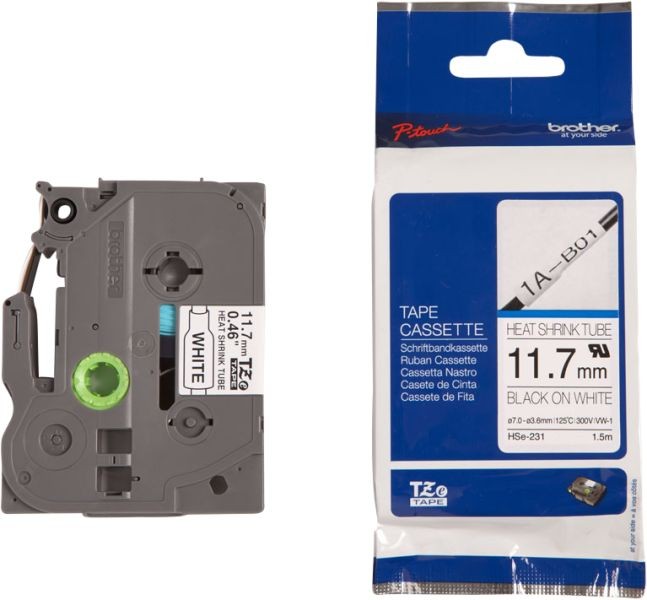 Cinta tubo termorretráctil HSe-231 BROTHER Texto negro sobre fondo blanco. Ancho: 11,7 mm. Longitud: 1,5 m