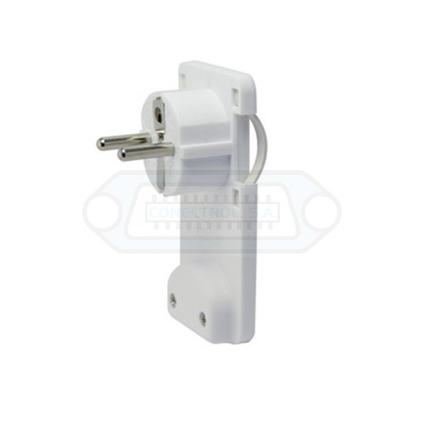 Clavija de red Schuko macho acodada extraplana Electro DH 36.024/B en color blanco para detras de muebles.