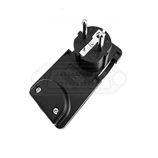 Clavija de red Schuko macho acodada extraplana Electro DH 36.024/N en color negro para detras de muebles.