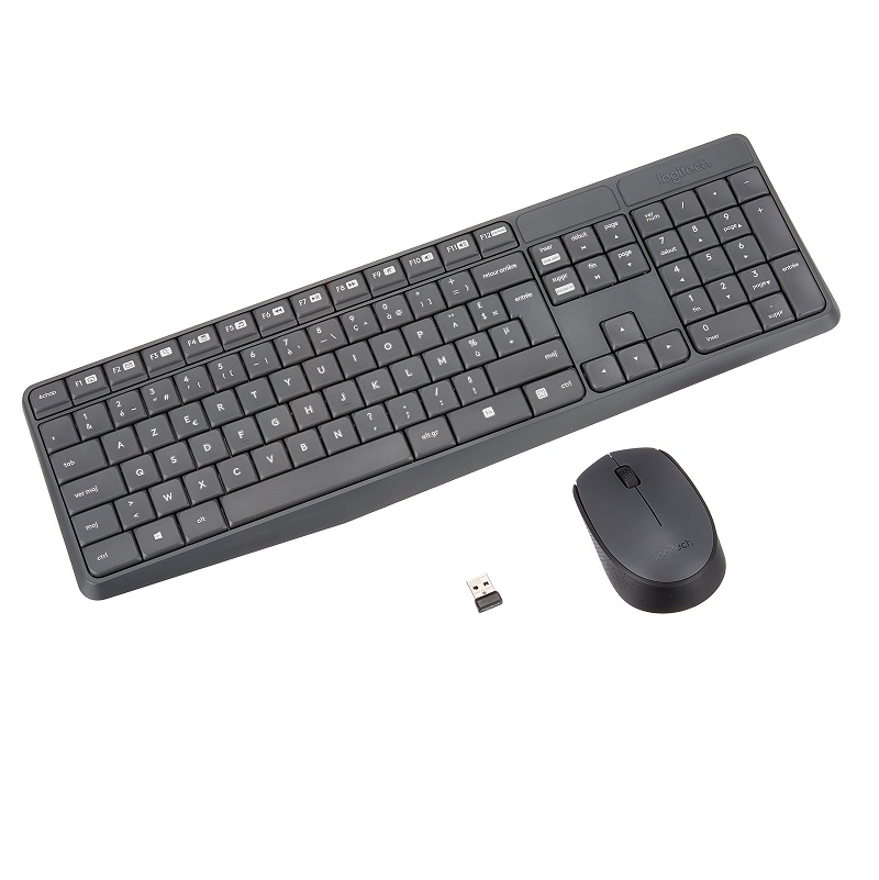Logitech MK235 es un combo de teclado y ratón Plug and Play sencillos, con fiable conexión inalámbrica hasta a 10 metros de distancia, que comparten un minúsculo receptor USB. Sin líos de emparejamiento ni de instalación de software.