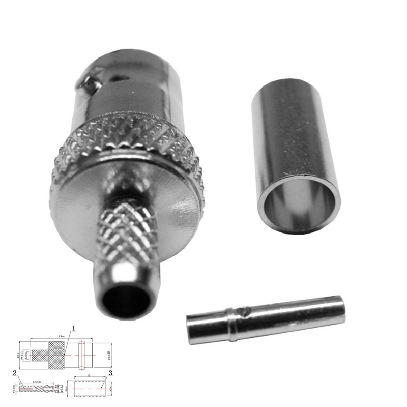 Conector coaxial BNC 50Ω hembra aéreo recto para crimpar en cable de RG58