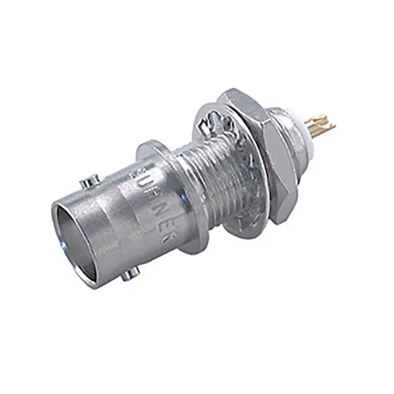 Conector RF / Coaxial BNC hembra 50ohm para panel (Chasis) con tuerca y rosca, para soldadura en cable.