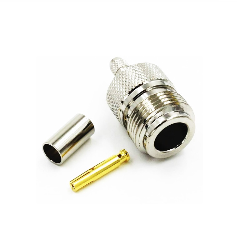 Conector Coaxial tipo N hembra aérea 50Ω para crimpar en cable RG-58, RG-195, RG-6