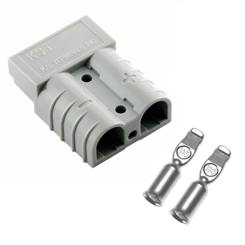 Conector modular de potencia BMC2S (tipo Arderson) macho de 2 vías en color gris con terminales de 50A 600V máx.