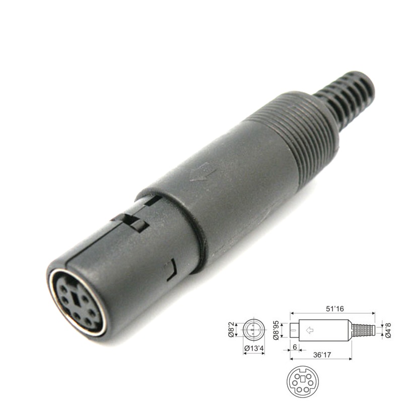 Conector Mini DIN 6 pines hembra aéreo recto, para soldar en cable, carcasa de plástico negro