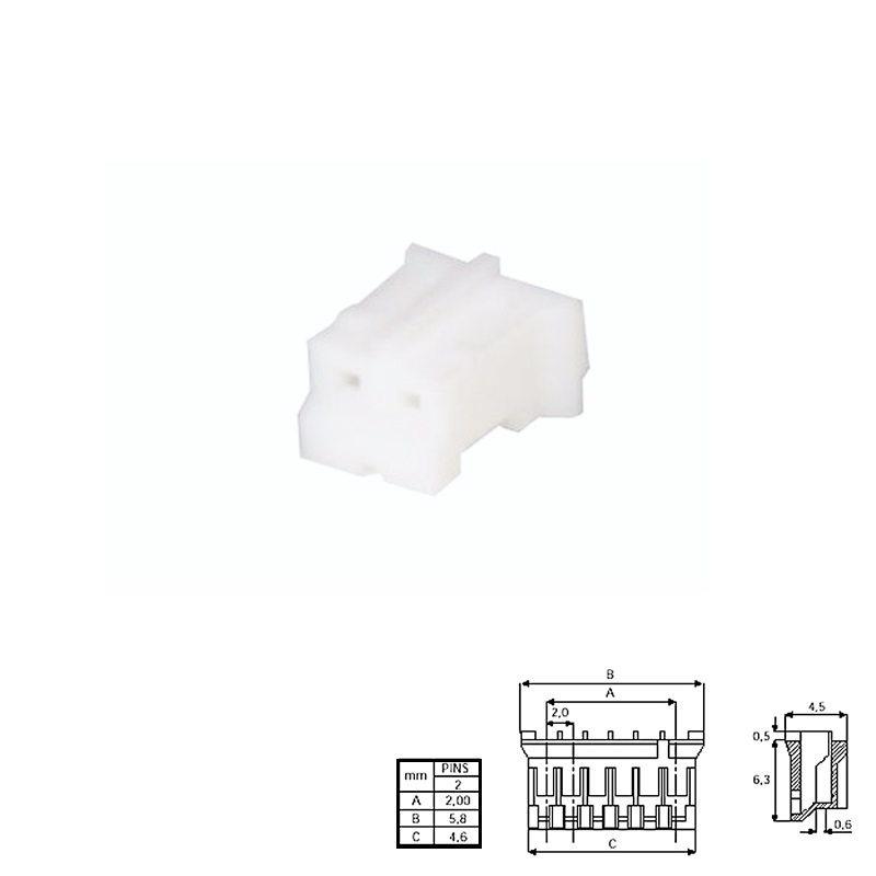Conector Poste polarizado hembra de 2 pines paso 2,00mm