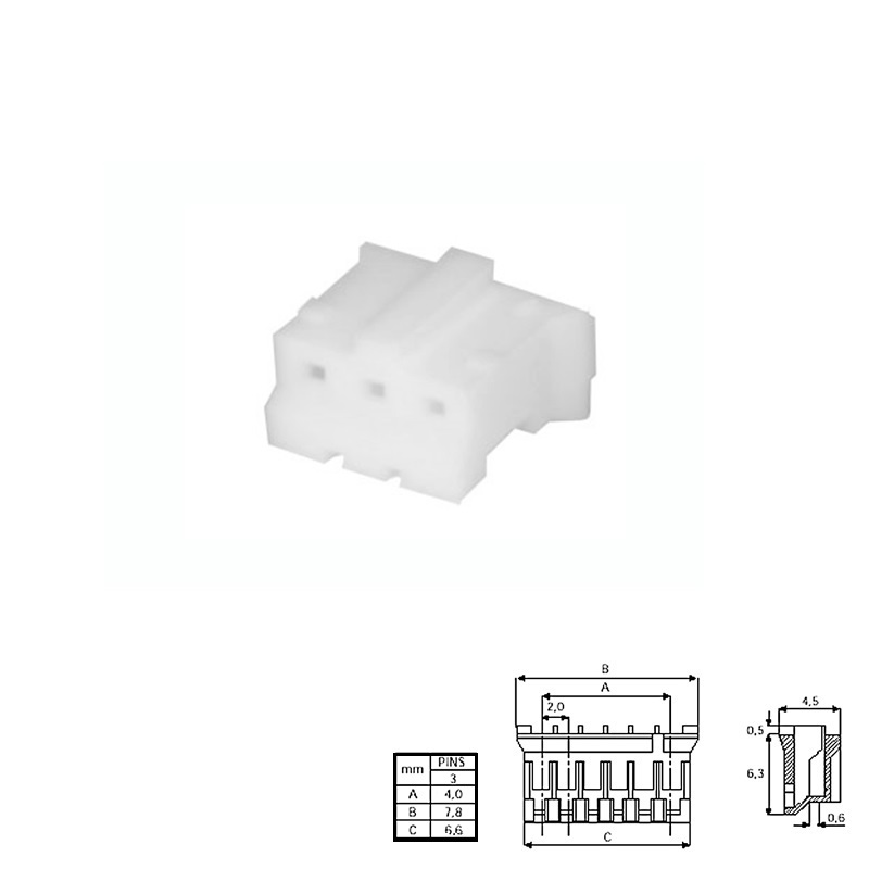 CONECTOR POSTE 2,00mm 3 PINES HEMBRA