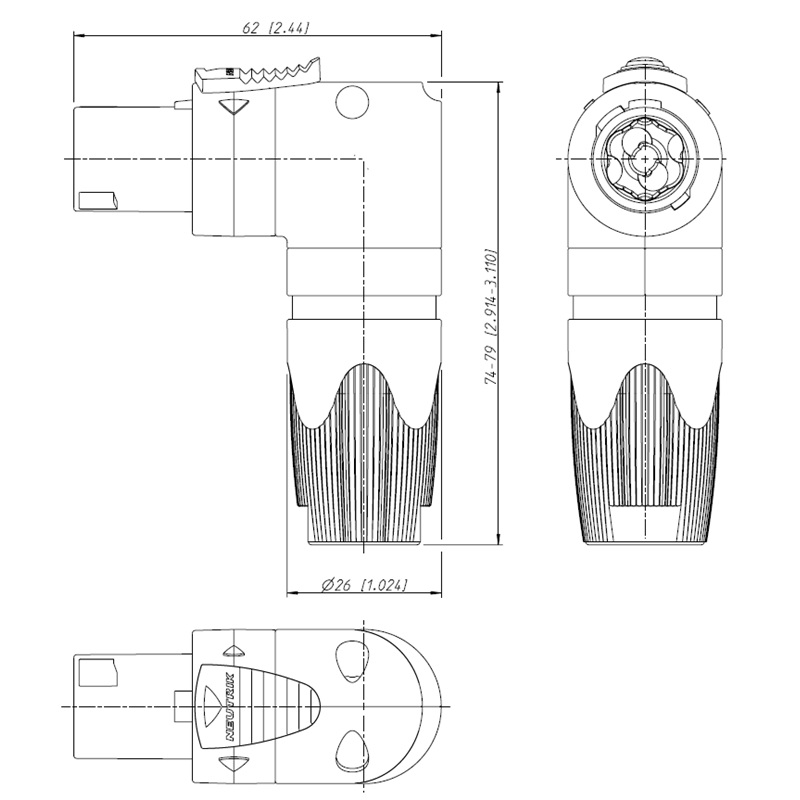 Portada Tienda Conectores Conectores Audio y Vídeo Conectores SPEAKON CONECTOR SPEAKON 4P HEMBRA AÉREO 90º PA6 NEGRO NEUTRIK