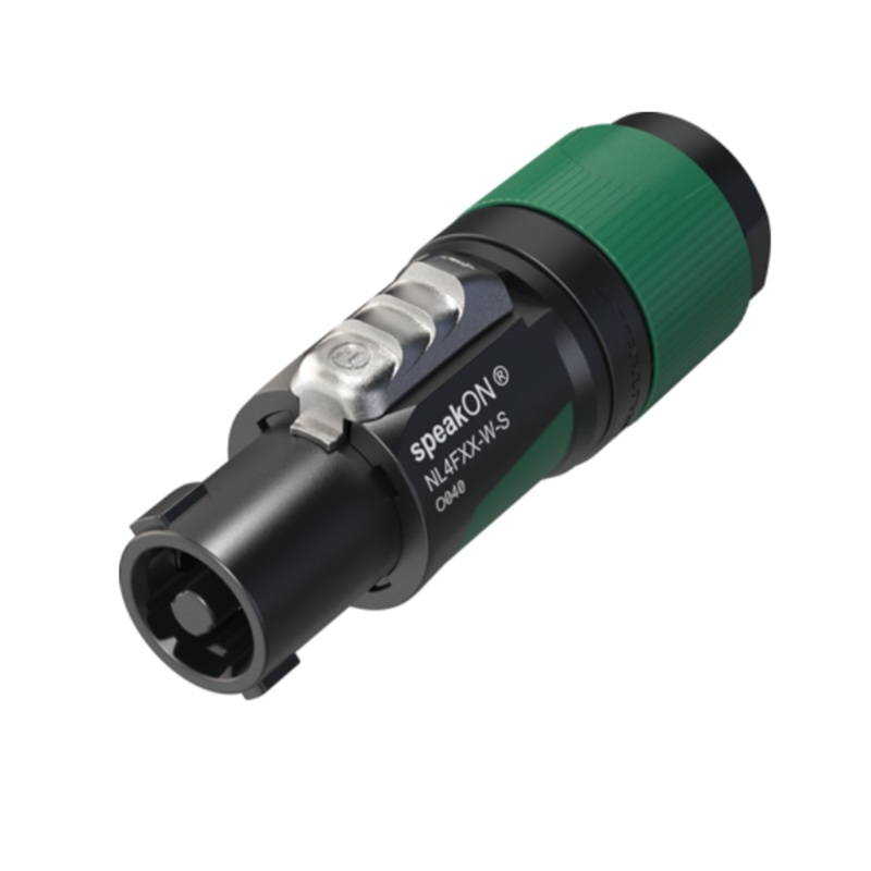 Los conectores SpeakON son el estándar de la industria para la conexión de altavoces. Esta serie de productos ofrece conectores de cable extremadamente fiables y robustos con un sistema de cierre por torsión de eficacia probada. Los conectores de cable SpeakON cuentan con contactos sólidos con terminales de tornillo que incluyen protección para cable trenzado.