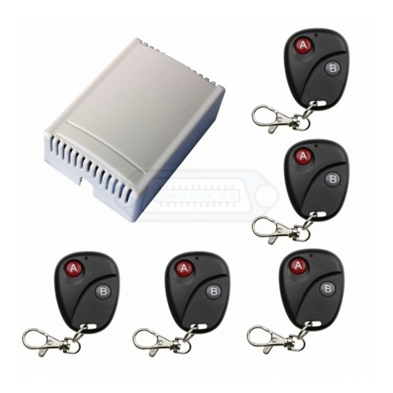 Interruptor de Relé de Control Remoto Inalámbrico con 5 mandos 12V DC 2CH RF Receptor Sistema de seguridad para Puertas de Garaje