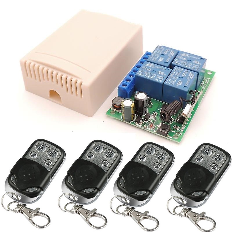 Interruptor de Relé de Control Remoto Inalámbrico con 4 mandos AK-RK04SE-220 85 v ~ 250 V 110 V 220 V 230 V 4CH RF Receptor Sistema de seguridad para Puertas de Garaje
