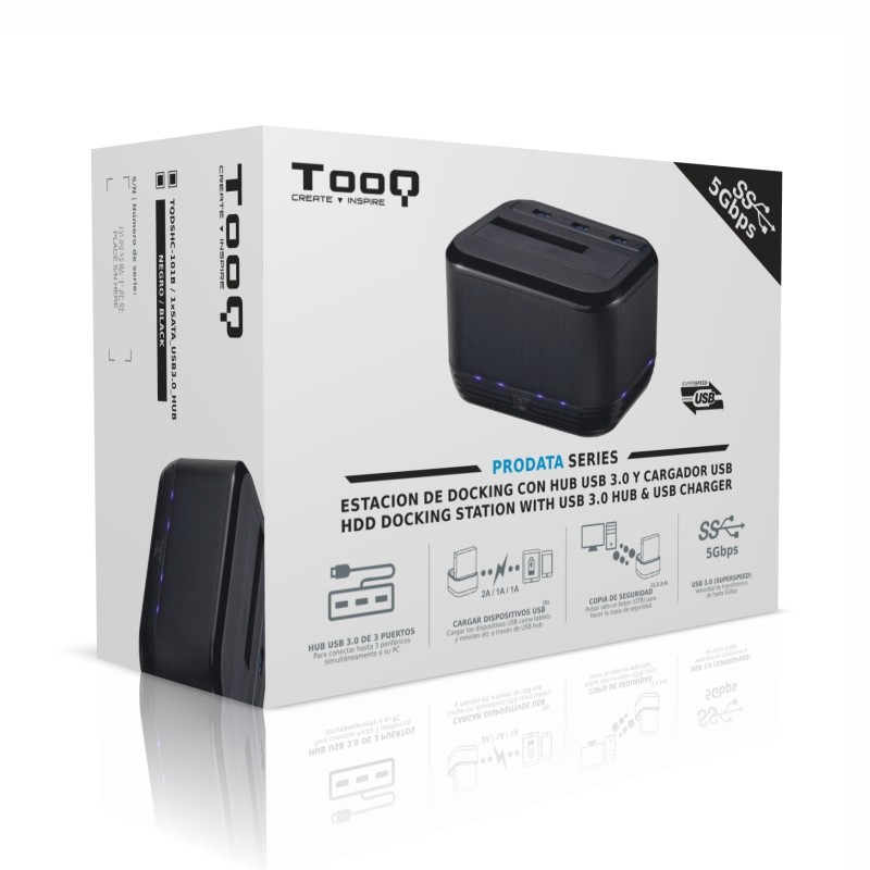 Docking Station TOOQ TQDSHC-101B USB 3.0 SATA I/II/III 2,5″/3,5″ con HUB USB 3.0 y cargador USB.